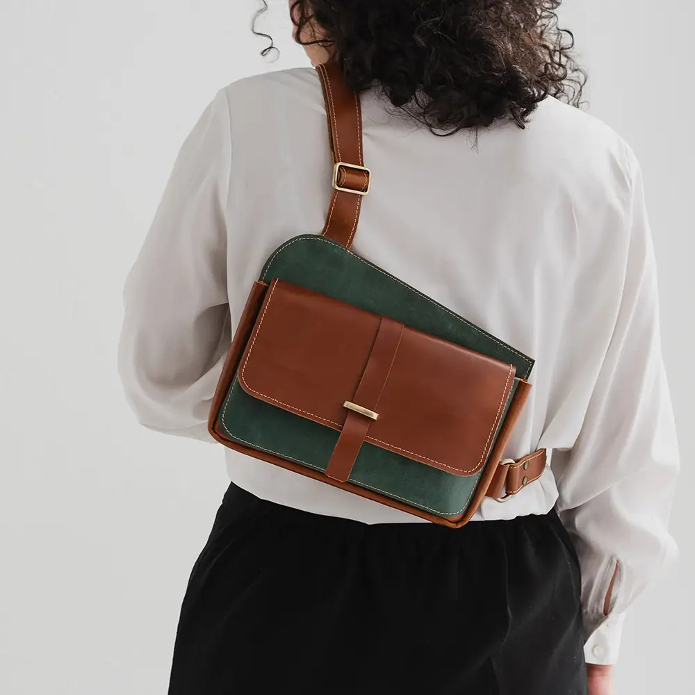 کیف دوشی چرم طبیعی مدل هایکا