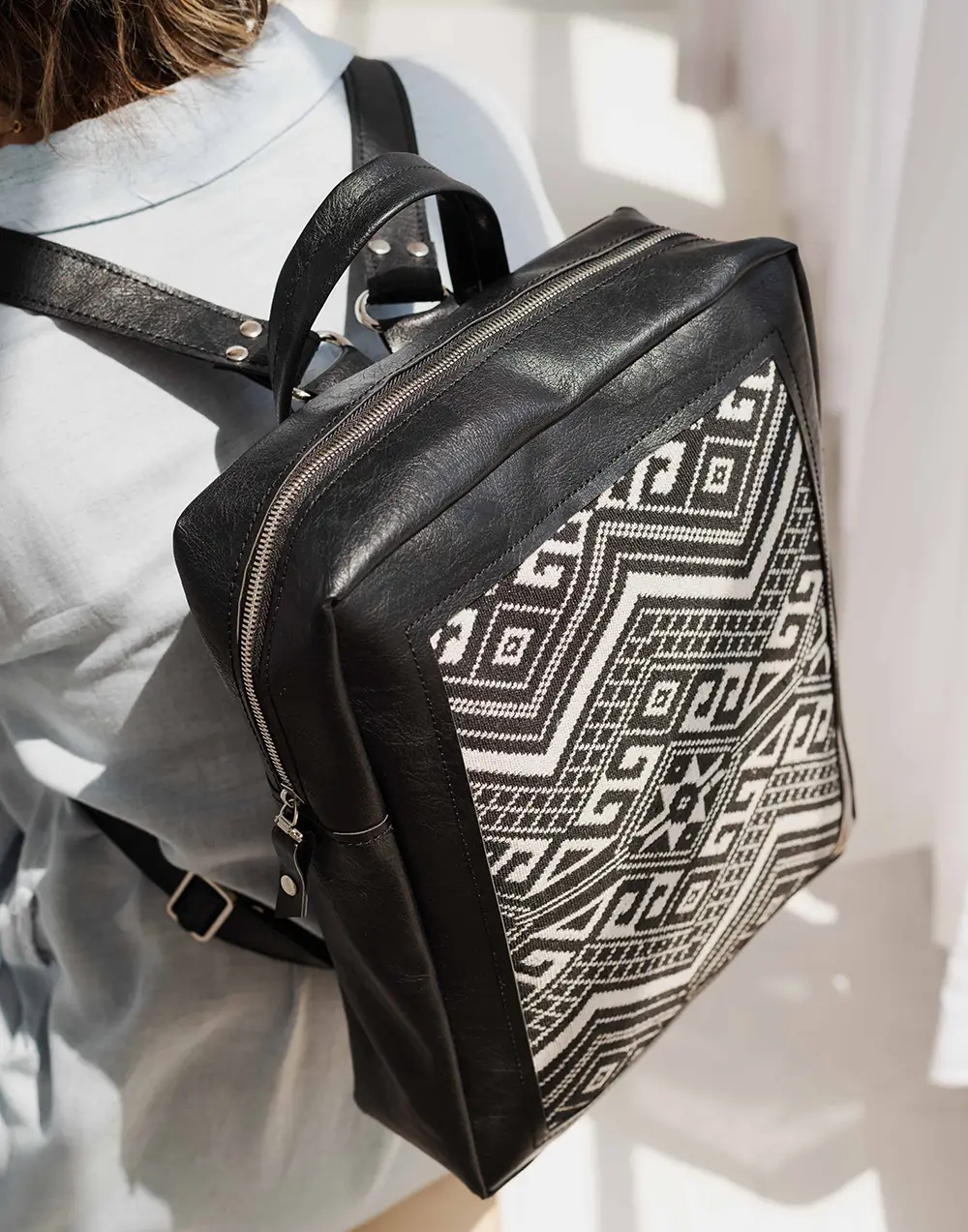 کوله پشتی چرم مصنوعی و پارچه دستبافت مدل اردیبهشت